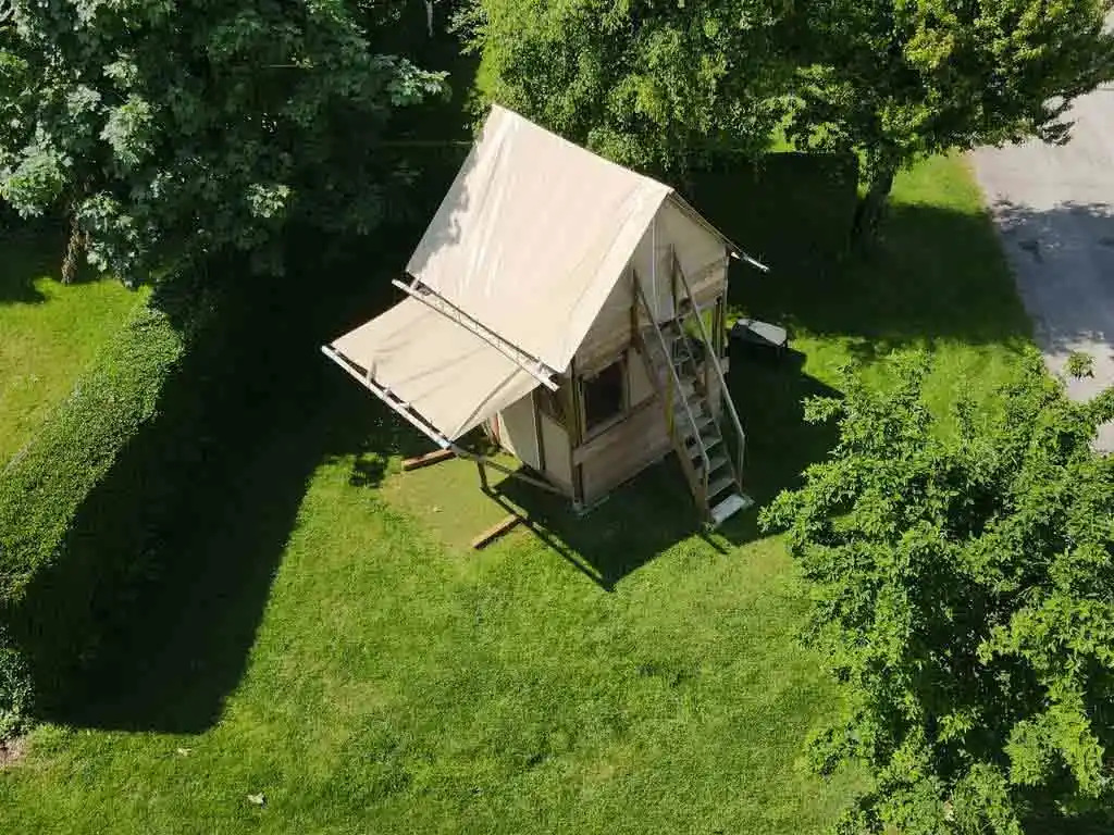 • d’un esprit camping pur, mais avec plus de confort qu’une tente classique,