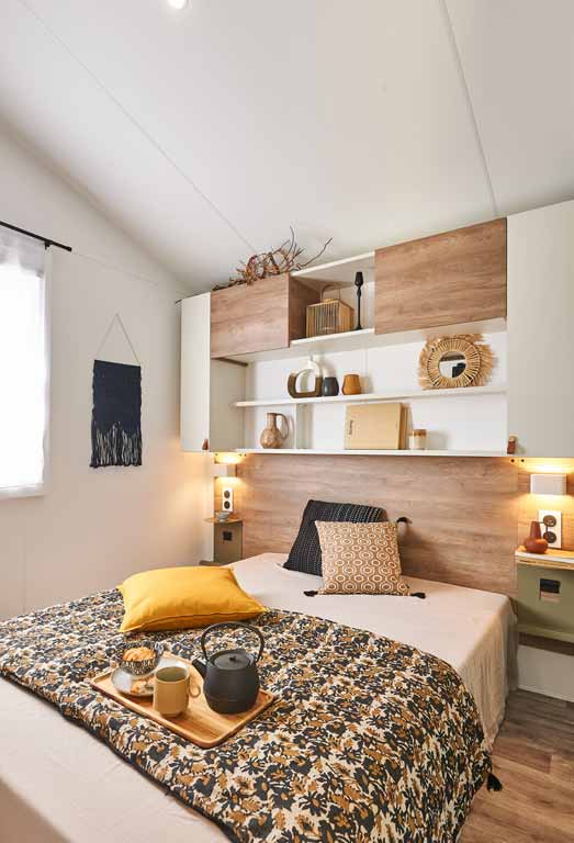 Nos mobil-homes 3 chambres disposent d'une suite parentale, d'une chambre avec 2 lits jumeaux et une chambre avec 3 lits simples dont 1 en hauteur.