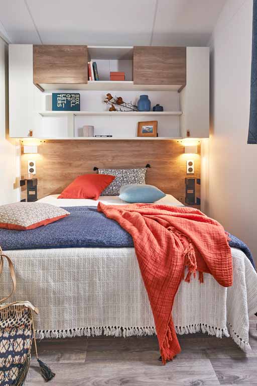 Ce mobil-home haut de gamme est idéal pour 4 personnes, avec la possibilité d’ajouter un lit bébé dans la chambre parentale.