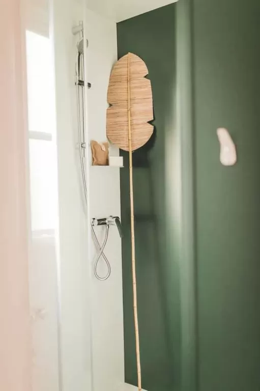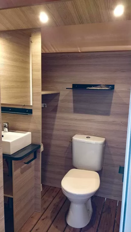• la douche est à prendre dans le bâtiment sanitaire tout proche.